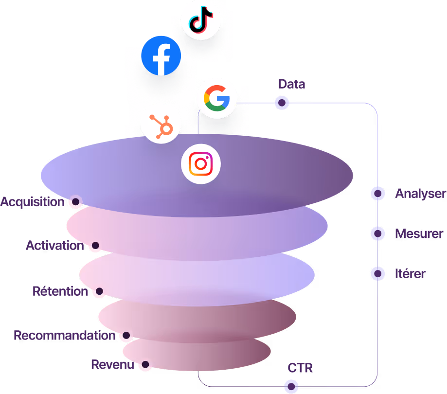 Notre réseau de +20 experts en growth font partie du top 1 % en génération de leads. Cela nous permet d’avoir une approche growth sur l’intégralité du funnel.